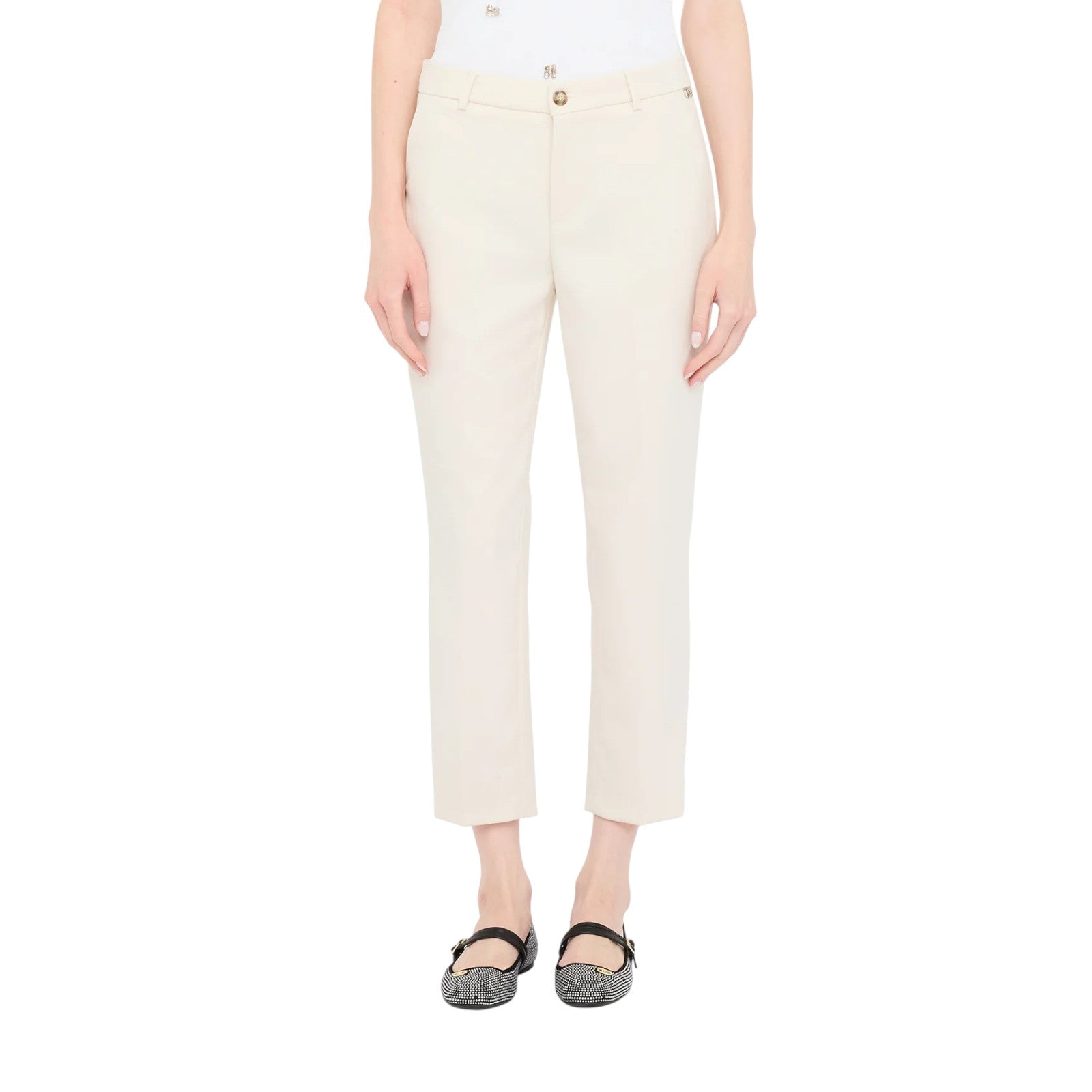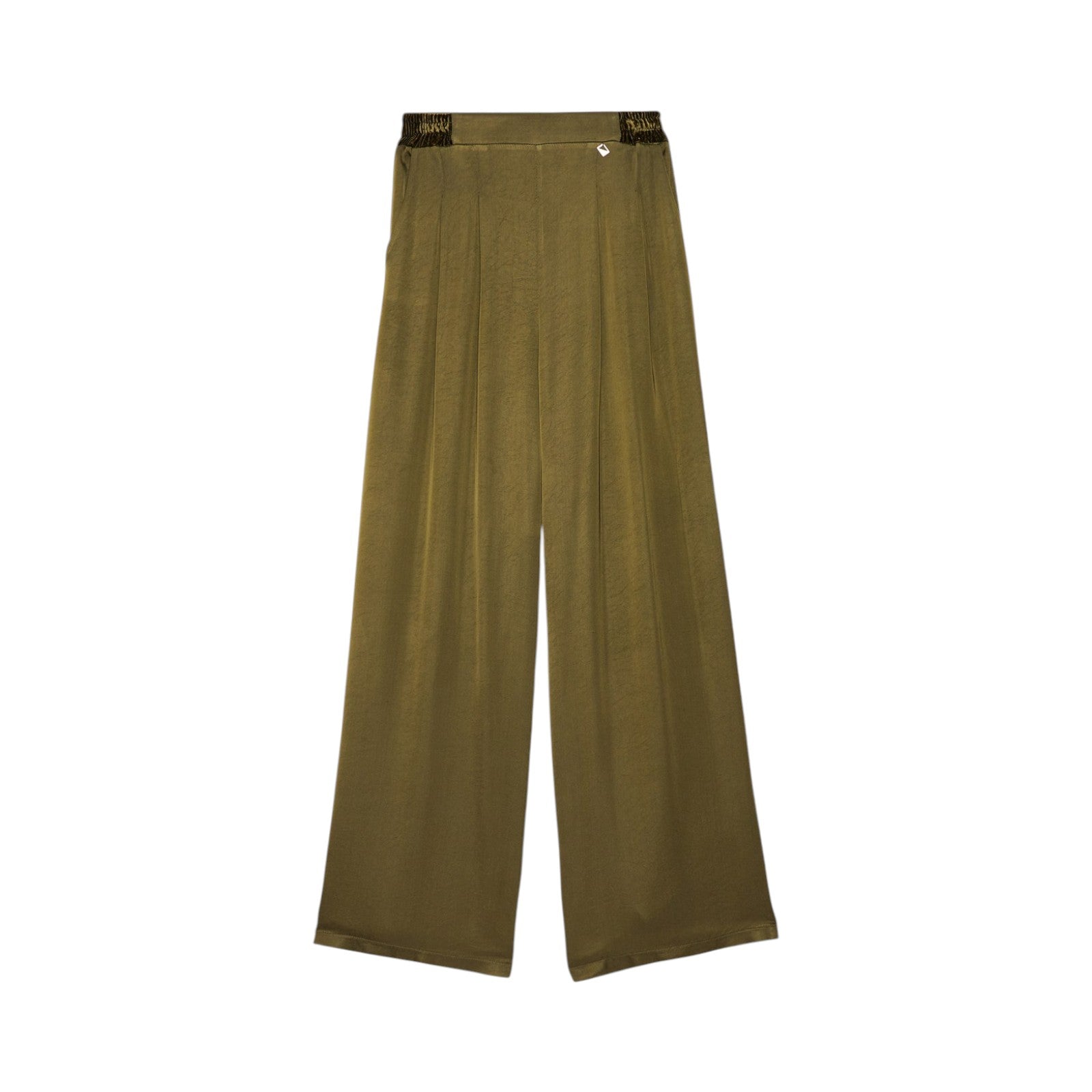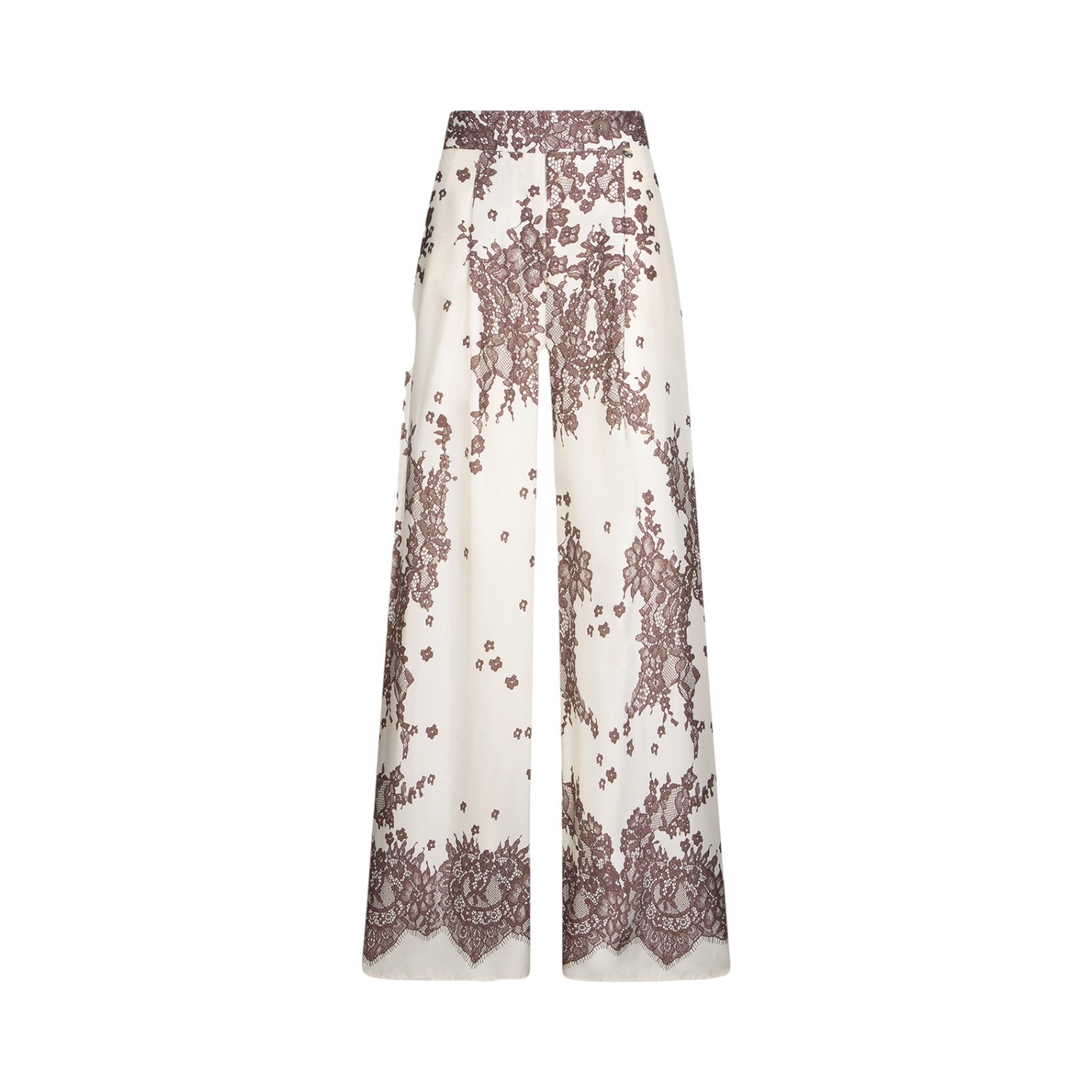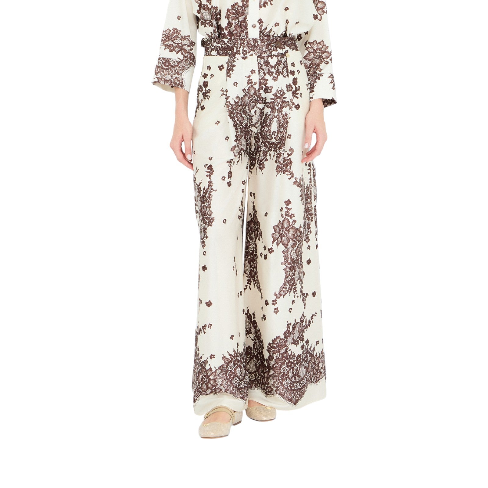 Pantaloni donna bi-color in doppio crêpe con stampa