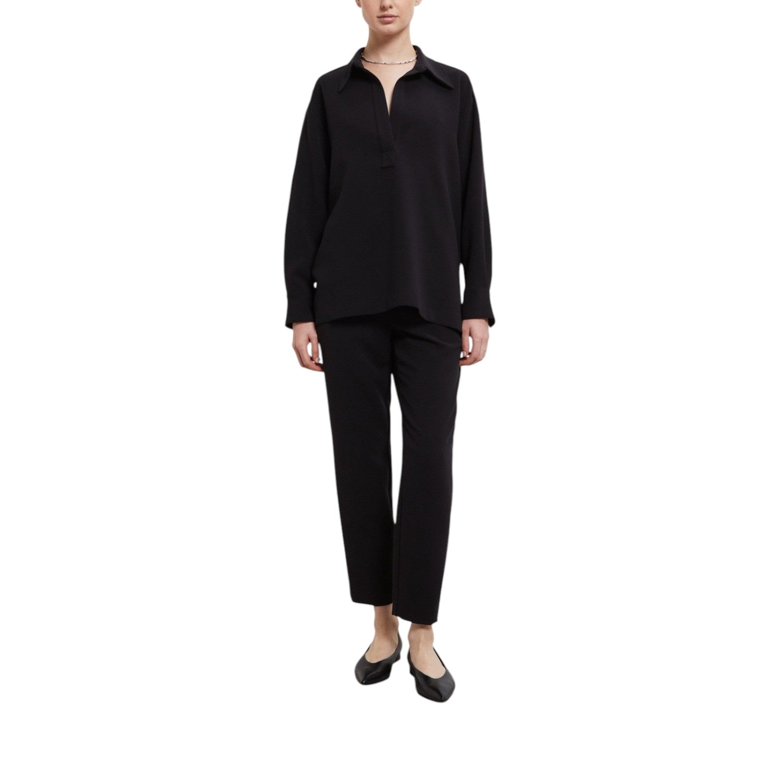 Pantaloni donna dritti in velluto con dettagli in eco pelle