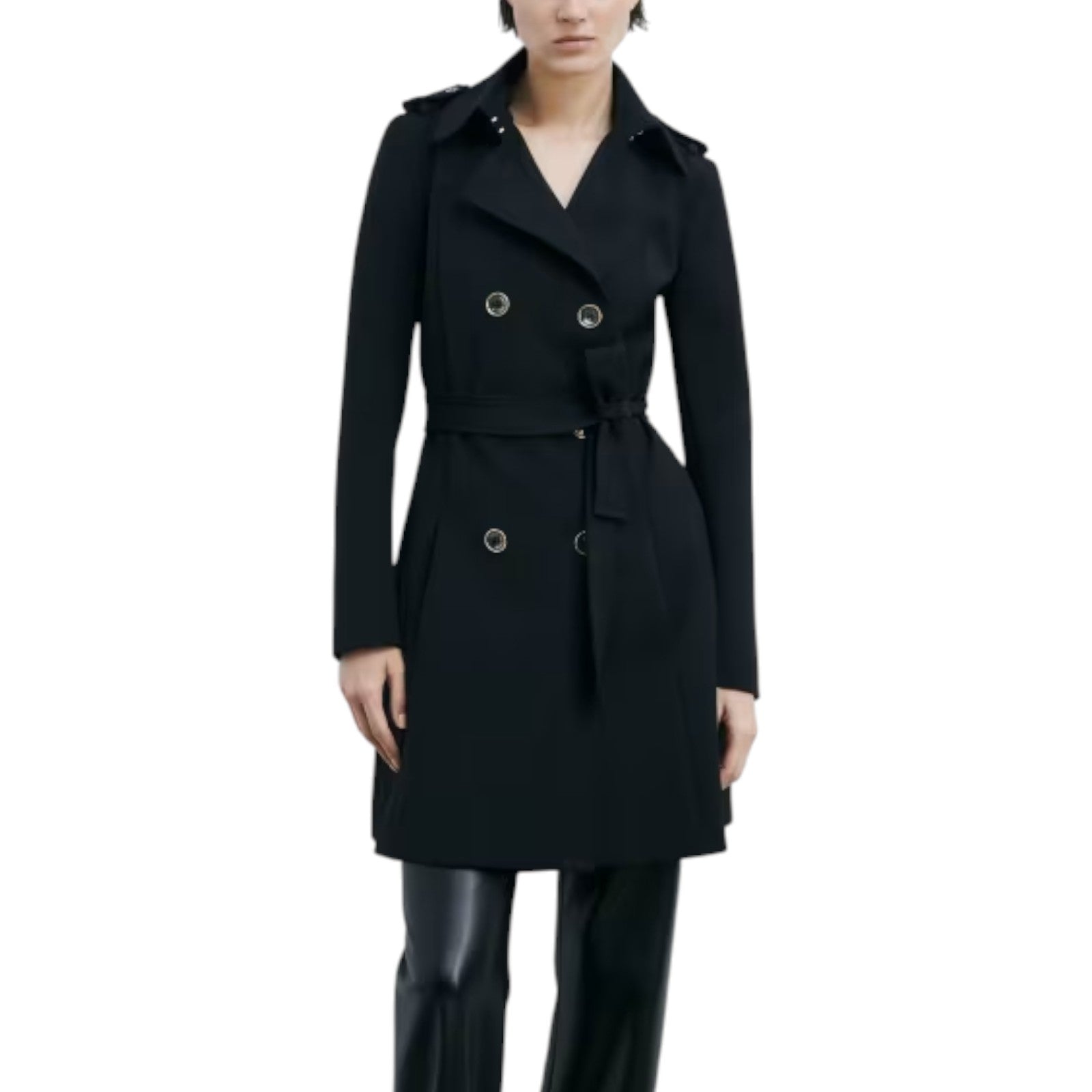 Giacca donna con cintura in tessuto spalmato