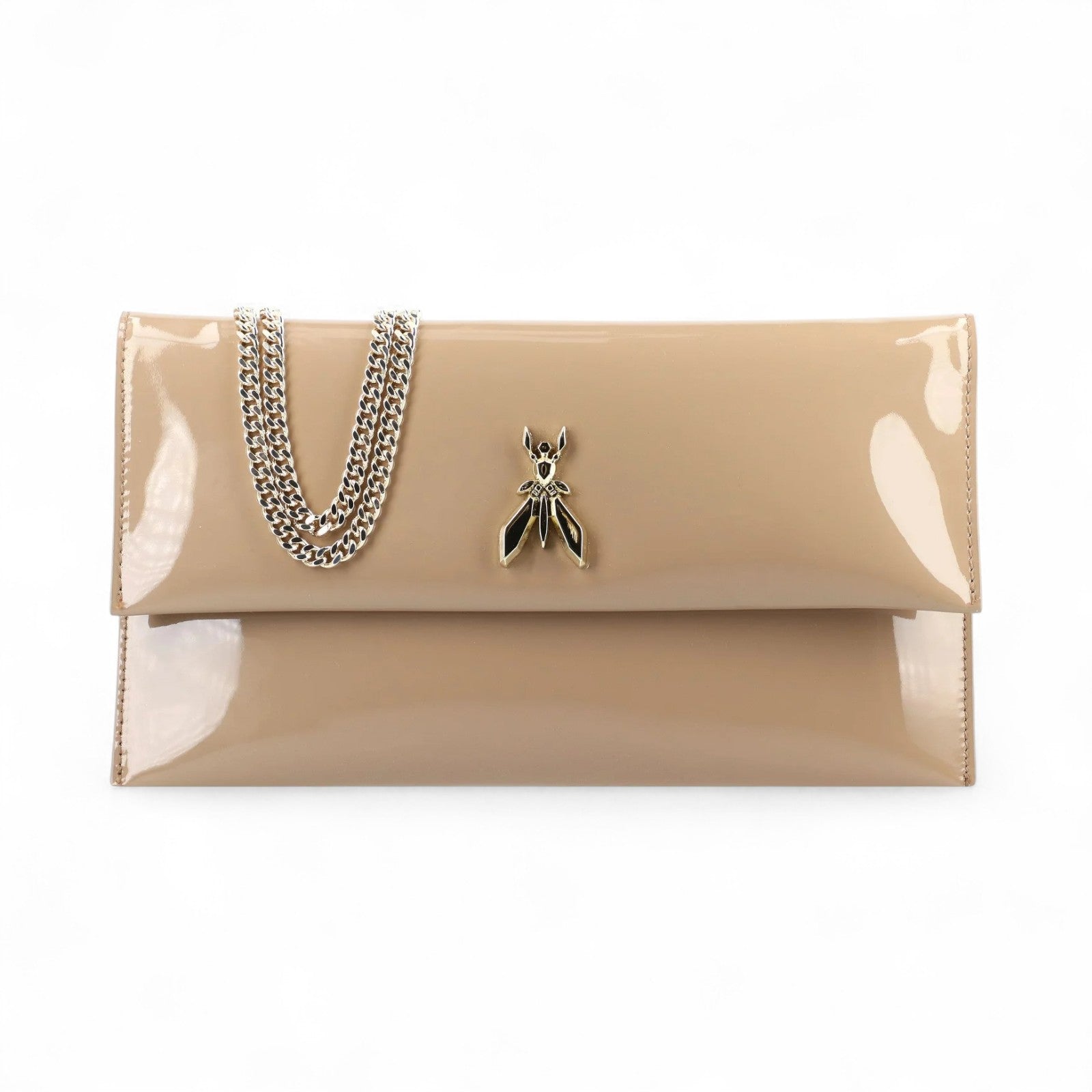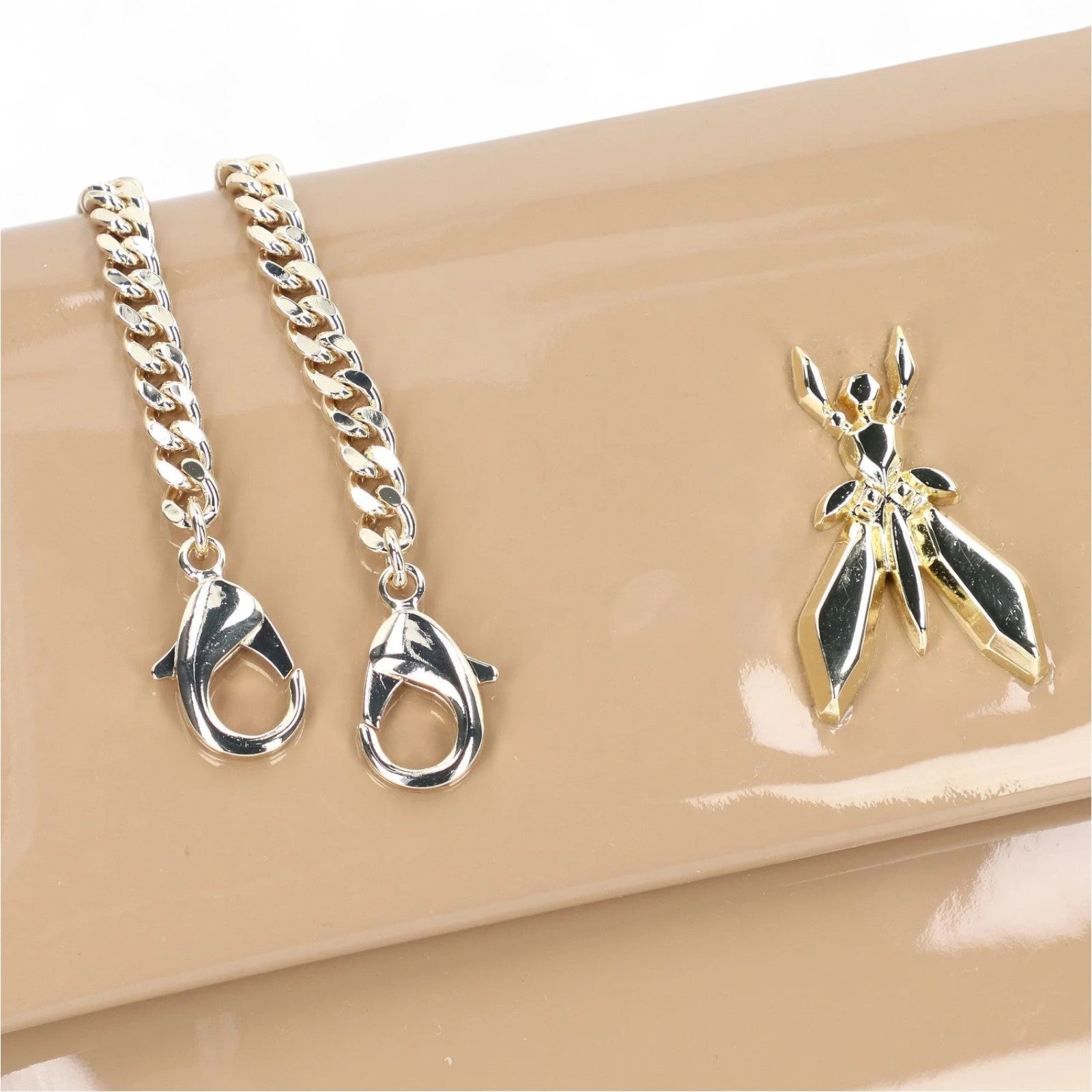 Borsa Pochette. Tracolla in catena staccabile; Chiusura con calamite. Tasca aperta. Fodera maxilogo Galvanica light gold.