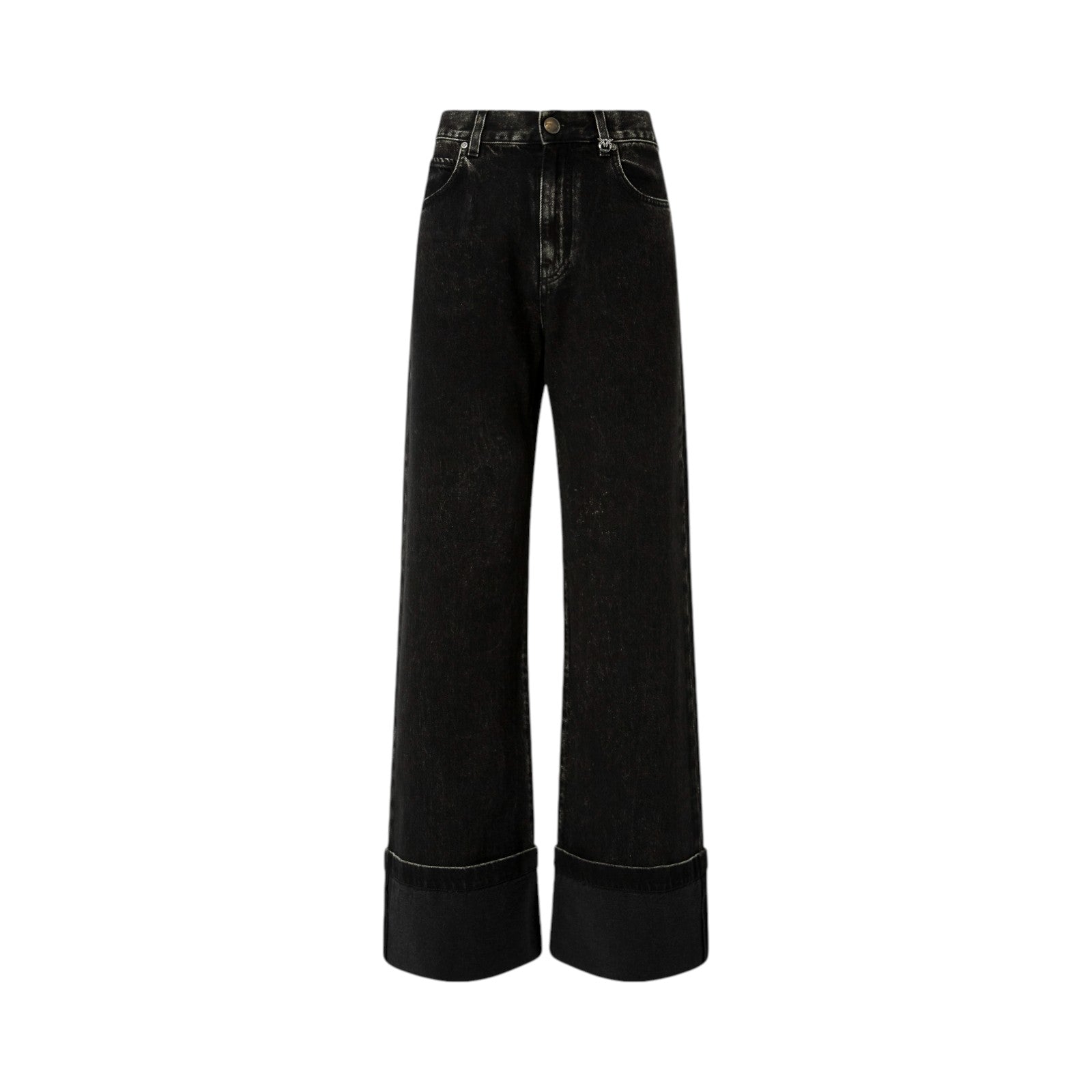 Jeans cinque tasche da donna con silhouette wide leg dalla gamba dritta e ampia con fondo risvoltato fisso. Il capo è realizzato in denim black di cotone e lyocell per una mano più fluida ed è trattato con diverse tecniche di lavaggio per raggiungere la tonalità finale. A personalizzare il design in puro stile PINKO troviamo il passante rimovibile con logo Love Birds.Passanti per cintura e chiusura frontale con bottone e zip nascosta. Il modello veste in modo un po' più ampio rispetto alla taglia abituale.