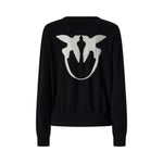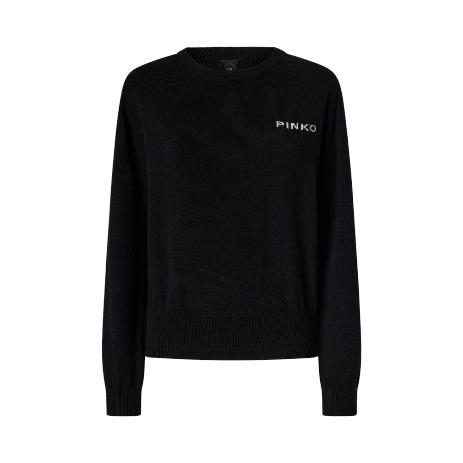 Maglione girocollo a maniche lunghe in pregiato misto lana e cashmere. L'inimitabile stile del brand viene espresso al massimo in questo capo, arricchito dal maxi logo Love Birds sul retro e dal logo lettering PINKO a contrasto sul davanti, lato cuore.