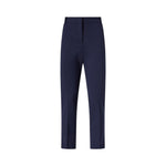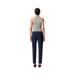 Pantaloni eleganti dalla silhouette cigarette-fit in tessuto tecnico di viscosa stretch lavorato a punto stoffa. Vita regular, completata da passanti per cintura, e tasche alla francese sui fianchi, a filetto sul retro. La gamba dalla linea dritta e affusolata è completata da piega centrale sia davanti che sul retro. Chiusura nascosta davanti.