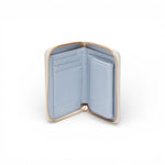 Portafoglio piccolo effetto bottalato. Scomparti per monete, banconote e tessere. Chiusura con zip.