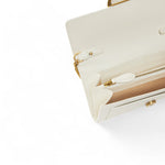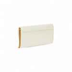 Portafoglio Love Bag a tracolla in morbida pelle mano seta. La chiusura con bottone nascosto è completata dall'iconica fibbia in metallo Love Birds Diamond Cut. L'interno è foderato in microfibra e comprende tramezza chiusa con zip e spazi per carte di credito. La tracolla metallica a catena rotonda permette di portare il portafoglio come una borsa crossbody, ed è rimovibile.