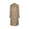 Abito con colletto tipo polo, in twill di viscosa stampato, dalla linea a matita con raffinati bottoni foderati. Maniche lunghe, sfoderato.