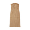 Abito bustier a tubino con effetto suede e spacco posteriore.