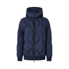 Bomber imbottito con trapuntatura a cipolla realizzato in comoda e resistente tela tecnica e rifinito da collo, polsini e fondo in maglia a costine. Il design è caratterizzato un cappuccio staccabile con zip e da maniche lunghe che si possono aprire tramite zip per trasformare il capo in una mantella. È completato da rifiniture con effetto spalmato sul bordo del cappuccio e lungo la chiusura frontale con cerniera a doppio cursore.