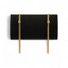 Borsa realizzata in materiale sintetico effetto camoscio. Si distingue per la tracolla a doppia catena con finitura dorata, arricchita da dettagli con logo. Personalizzata con logo centrale impresso a caldo.