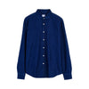 Camicia in denim lavaggio scuro, con collo alla francese. Maniche lunghe abbottonate. Chiusura frontale con asole e bottoni.