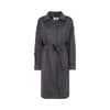 Cappotto in panno viene proposto in questa versione misto lana dalla mano morbida con patch piazzato ricamato da cristalli e perline. Ha collo con revers, chiusura a vestaglia con cintura rimovibile, linea morbida a uovo, foderato.