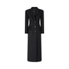 Cappotto lungo monopetto dalla linea sfiancata con collo a revers, spalle strutturate e tasche con patta, realizzato in morbido panno di misto lana. Il lungo taglio asimmetrico sul retro e l'abbottonatura decentrata sul davanti contribuiscono a rivisitare un design classico.