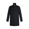 Cappotto nero. Realizzato in softshell idrorepellente. Colletto in panno a contrasto. Tasche sui lati. Polsi con spacchetti. Spacco sul retro. Patch sulla manica. Interno in nylon imbottito e trapuntato. Chiusura con zip e bottoni.