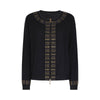 Cardigan girocollo con bordi in borchie lungo il davanti, attorno alla scollatura e ai polsi. Zip con cursore Monogram, linea boxy.