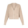 Cardigan con filati mouliné in misto lana e cashmere. Scollo a V. Chiusura con bottoni gioiello. La modella è alta 180 cm e indossa la taglia S.