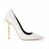 Décolleté in pelle su tacco scultura color oro.