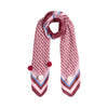 Misure: 120 x 120 cm. Foulard. Stampa logo patchwork con motivo a righe. Pompon applicati. Presenta pochette logata.