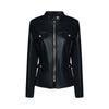 Giacca modello biker con zip in metallo davanti e linea asciutta. Collo a listino con automatico per chiusura, taschini con bottone.