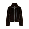 Giacca blouson realizzata in tessuto Aspen effetto pelliccia, con chiusura con zip a tutta lunghezza, un collo alto morbido e l'orlo con arricciatura. Il tessuto spalmato effetto pelle che profila le tasche, la chiusura e il cinturino con piccola fibbia conferiscono al modello uno stile biker perfetto per la stagione fredda.