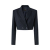 Giacca blazer doppiopetto dal taglio corto stile spencer con revers classici e interno foderato. Il tessuto utilizzato è un classico gessato in lana poly caratterizzato da un cambio di tessitura e di luce a sottolineare il disegno del materiale.