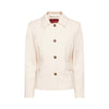 Giacca sartoriale in tessuto diagonale con colletto e bottoni, linea sciancrata. Tasche con patte.