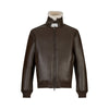 Giacca biker marrone. Realizzata in tessuto spalmato bottalato. Colletto a camicia in teddy con cinturino. Tasche sui lati. Polsi e fondo in maglia a costine. Chiusura con zip a doppio cursore.