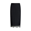 Gonna longuette in pizzo. Cintone elastico in vita. Fodera interna.