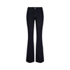 Jeans tailoring flare in denim stretch dark blu. Modello 5 tasche, con chiusura davanti. Gamba svasata, piega stirata.