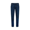 Jeans blu. Realizzati in denim di cotone stretch. Lavaggio used. Vita regolare. Gamba slim. Modello cinque tasche. Salpa logata. Chiusura con bottone e zip coperta.