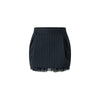 Gonna corta foderata dalla silhouette a palloncino, sottolineata da una costruzione a pieghe morbide. Il tessuto utilizzato è un classico gessato in lana poly caratterizzato da un cambio di tessitura e di luce a sottolineare il disegno del materiale. La vita è dotata di comodi passanti per cintura, mentre il fondo è tagliato a vivo per un effetto finale più leggero e vaporoso. Chiusura con zip invisibile sul retro.