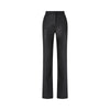 Pantaloni lunghi a gamba dritta realizzati in tela di misto lana d'ispirazione classica lavorata con sottile filo metallizzato, che crea un effetto gessato molto delicato e leggermente cangiante a seconda della luce. Il modello presenta una chiusura con bottone e zip sul davanti, tasche a filetto sul retro e piccoli spacchi sull'orlo dietro.