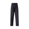 Pantaloni balloon-fit con gamba a palloncino morbida e arrotondata nella parte superiore e più stretta al fondo, dove si trova anche un cinturino per regolare l'indosso a seconda delle necessità. Il tessuto utilizzato è un classico gessato in lana poly caratterizzato da un cambio di tessitura e di luce a sottolineare il disegno del materiale. Il design sartoriale del capo è ulteriormente evidenziato dalle pinces, dalla costruzione della vita con passanti per cintura e dal taschino a filetto sul retro. Chiusura con bottone e zip nascosta.