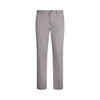 Pantaloni chino grigi. Realizzati in raso di cotone stretch. Piega stirata. Tasche sui fianchi. Tasche a filetto sul retro. Chiusura con bottone e zip coperta.