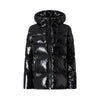 Piumino imbottito dalla silhouette caban in tessuto crystal nylon dal particolare finishing lucido, personalizzato da patch logo Love Birds su una manica. Collo a cappuccio con coulisse a cordino con finalino in metallo, maniche lunghe e tasche a filetto verticale sui fianchi. Il capospalla è foderato per un maggiore comfort durante l'indosso. Chiusura con zip davanti, doppio cursore.