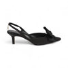 Scarpa elegante con tacco slingback e delicato fiocco satinato. Design in materiale testurizzato e comoda vestibilità con cinturino posteriore. Logo dorato sul tallone.