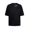 T-shirt con accessorio spilla a forma di libellule, posizionato vicino alla scollatura. Maniche corte e scollo tondo.