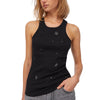 Top in cotone stretch a coste. Ricami gioiello. Scollo vogatore. La modella è alta 178 cm e indossa la taglia S.