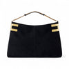 Tote media in pelle scamosciata dalla shape rettangolare morbida, arricchita da un elemento in metallo dorato che abbraccia i lati della borsa, trasformandosi in un logo doppia C visibile sia dal fronte che dal retro. Il manico in catena e pelle permette di indossarla comodamente sottobraccio. Dalle dimensioni generose, è un accessorio pratico e capiente.