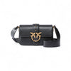 Mini bag compatta in vitello morbido dalla mano setosa, disegnata con linea leggermente morbida e profili dipinti a mano che ne valorizzano la struttura. La pattina arrotondata si chiude tramite magnete nascosto e cinturino centrale borchiato, dominato dall'iconico anello Love Birds in metallo dorato. Interno foderato in twill con doppio soffietto, tasca piatta con zip e fondo rinforzato per ordine e stabilità. Tracolla regolabile in pelle, dotata di fibbia scorrevole e moschettoni logo, per portarla a spalla o crossbody.