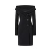 Vestito corto aderente a maniche lunghe realizzato in tessuto crêpe stretch che sottolinea la figura. L'abbottonatura decentrata, i polsini con bottoni e le tasche laterali a filetto sono un chiaro rimando al design di un classico blazer, mentre lo scollo ampio che lascia le spalle scoperte rende il modello decisamente femminile: l'effetto finale è un look strutturato ma di classe, come solo PINKO sa fare.