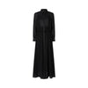 Vestito lungo dalla silhouette morbida d'ispirazione chemisier con maniche lunghe a palloncino. Il modello è realizzato in tessuto georgette semitrasparente con inserti effetto satin in corrispondenza di colletto stile camicia, abbottonatura frontale e polsini, ed è dotato di una sottoveste con spalline sottili che aiuta a bilanciare le trasparenze.