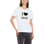 T-shirt in jersey di cotone. Maniche corte. Girocollo. Ricami gioiello. Prodotto "Liu Jo Better".