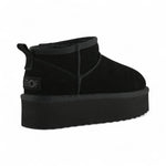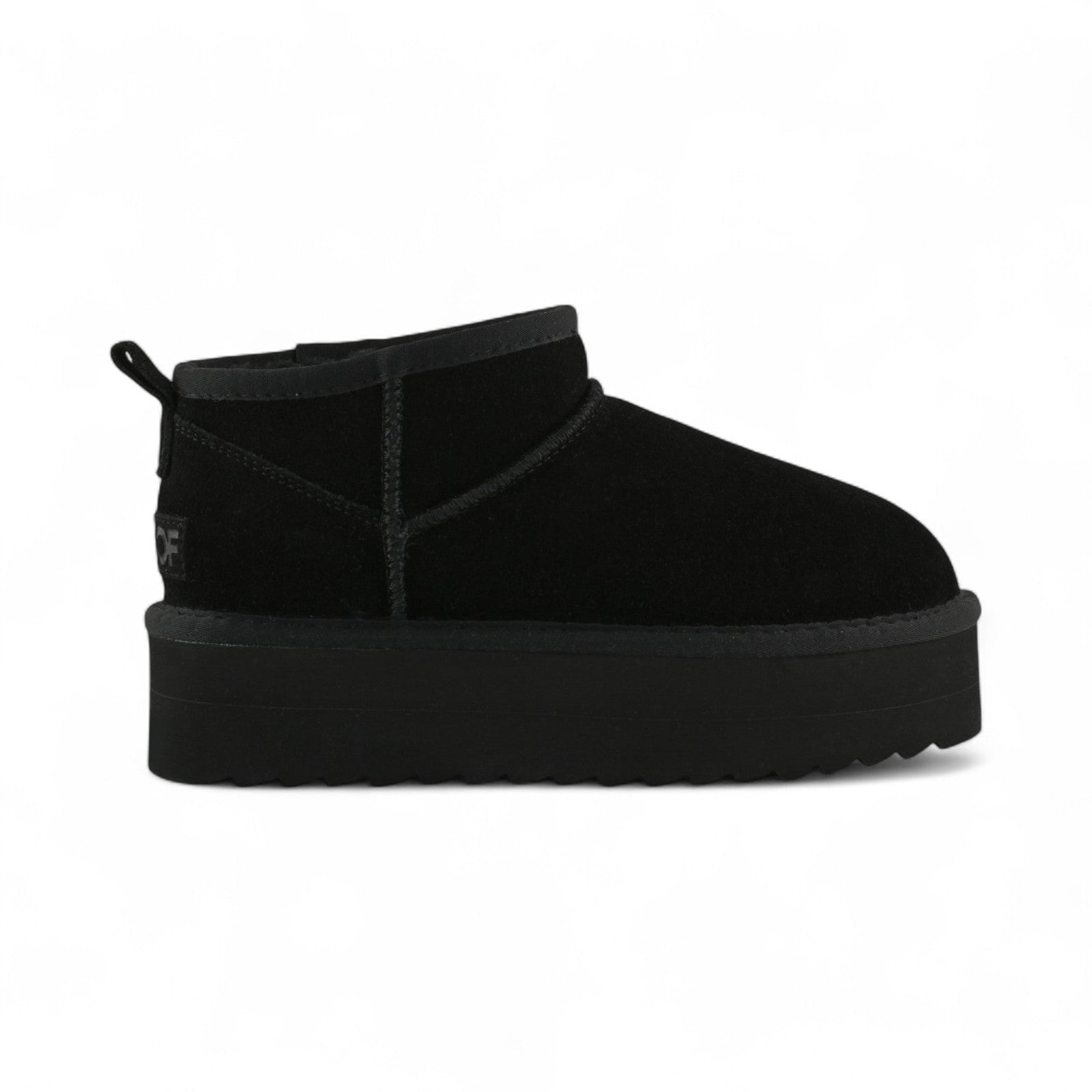 Realizzati in pelle scamosciata e fodera in misto lana, sono caldi e anche comodissimi, grazie alla suola platform.