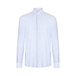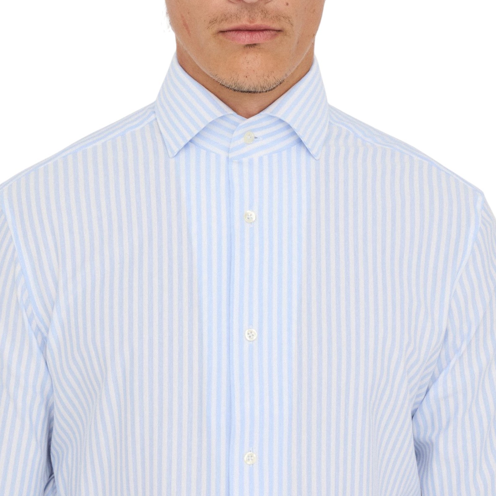 Camicia in misto cotone. Motivo a righe. Colletto alla francese. Maniche lunghe. Polsi con bottoni. Chiusura con bottoni.