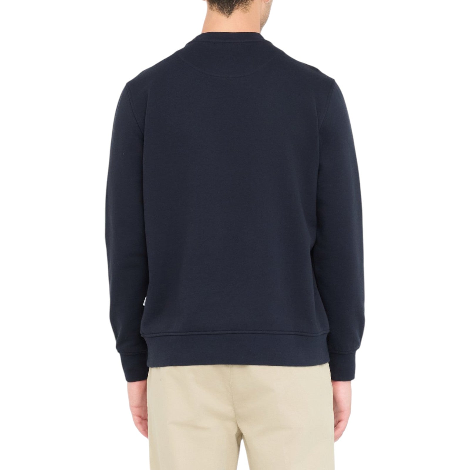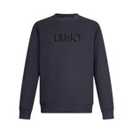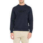 Felpa blu. Realizzata in misto cotone. Logo sul davanti. Taglio girocollo. Bordi a costine.