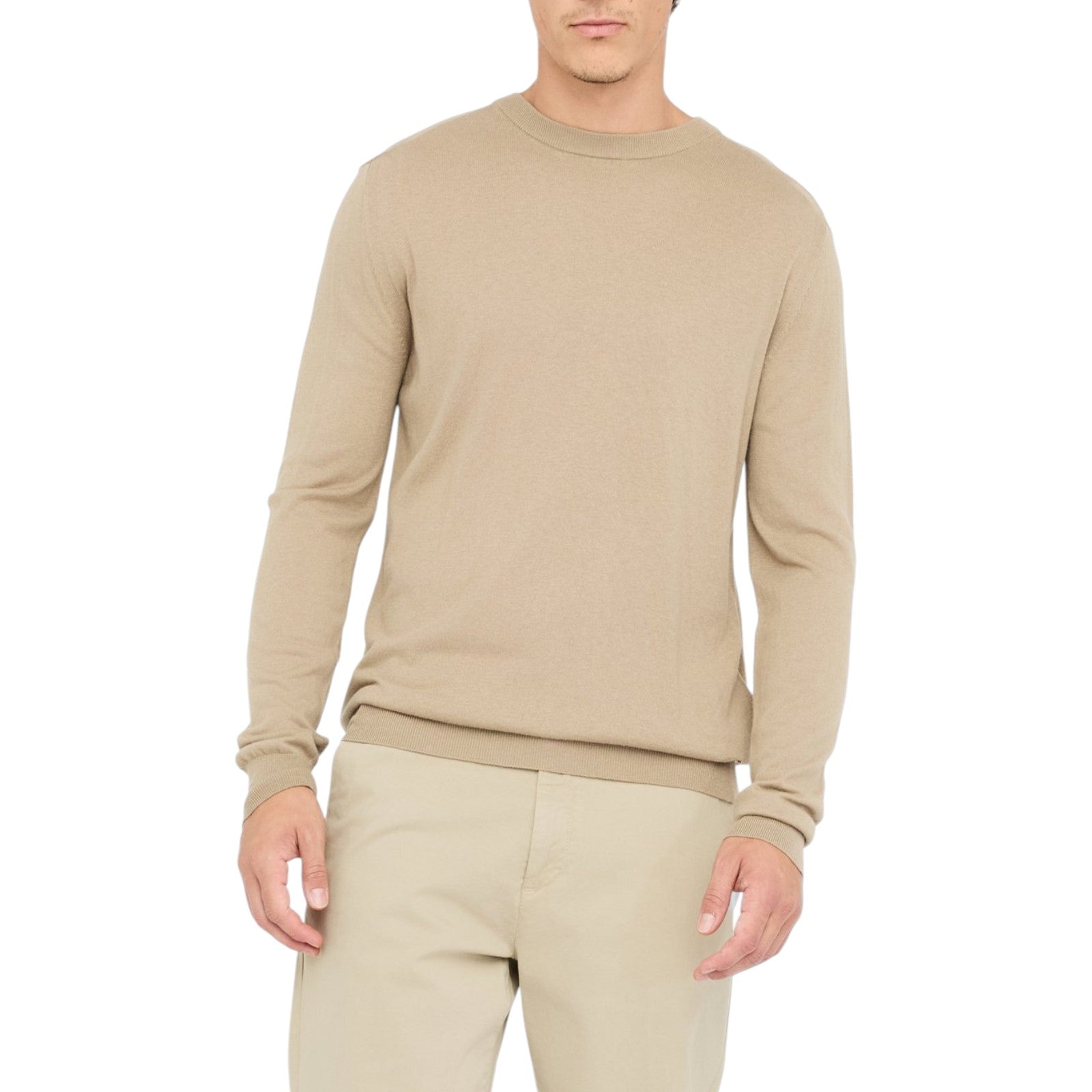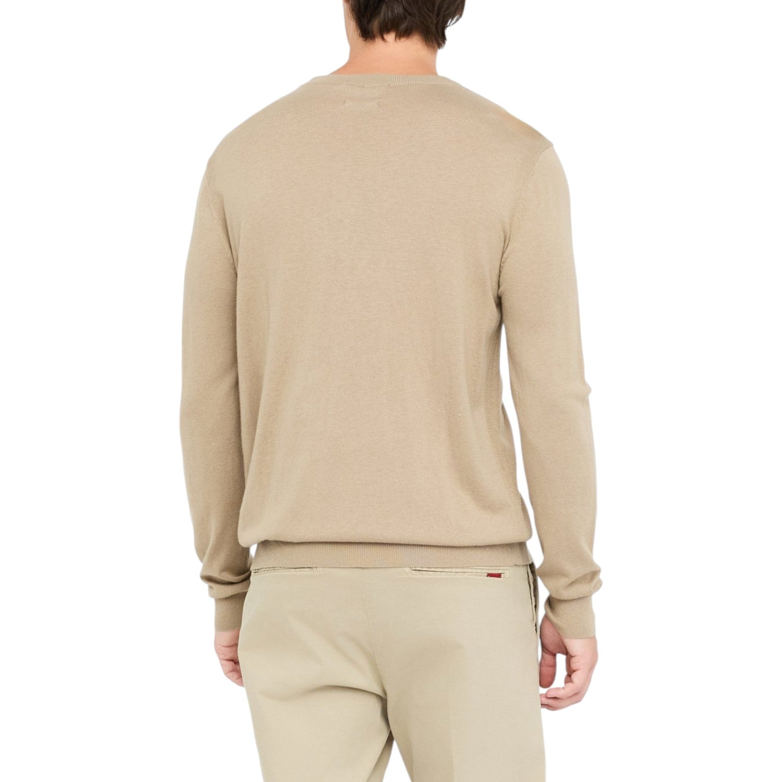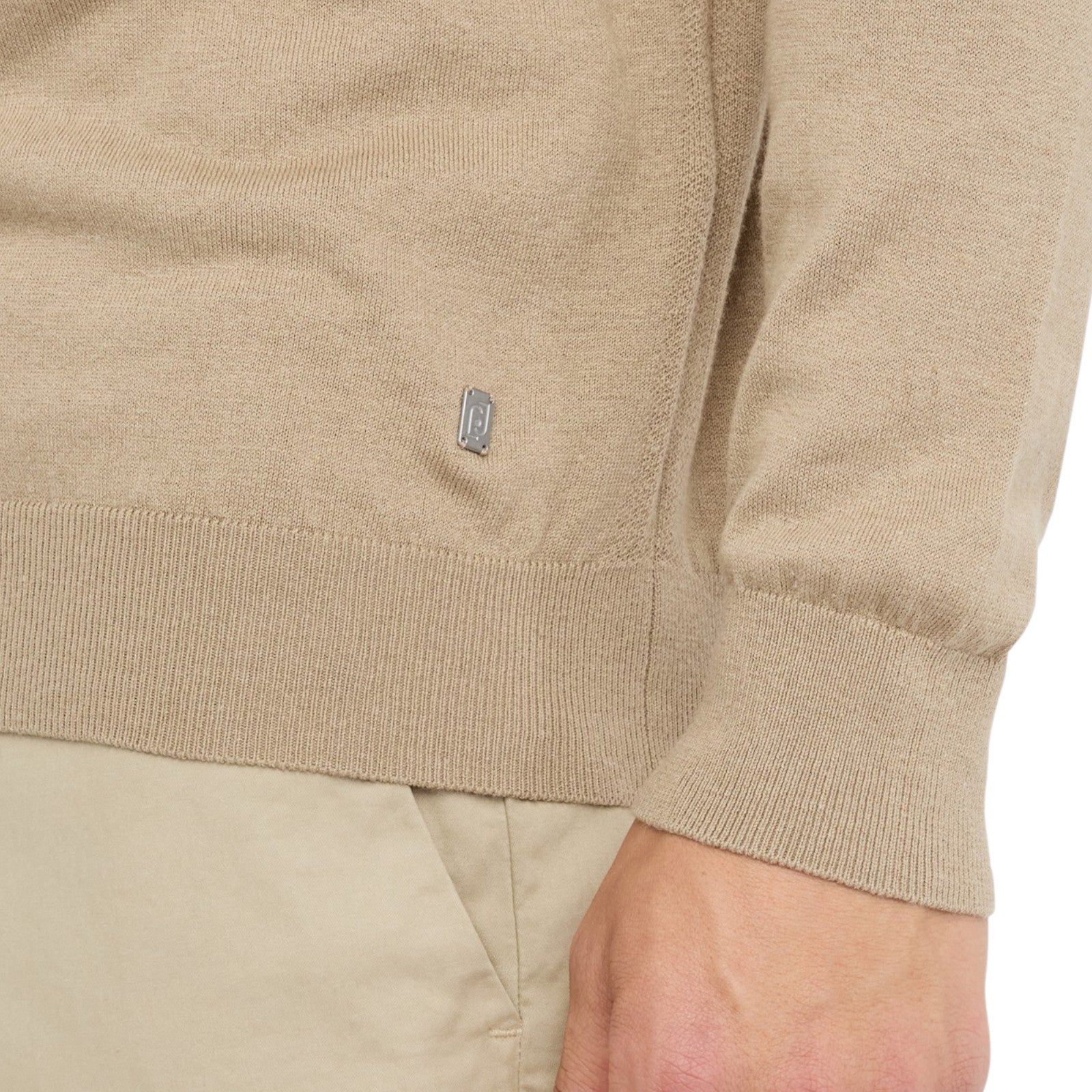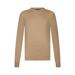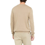 Maglia beige. Realizzata in misto cotone e seta. Taglio girocollo. Maniche lunghe. Bordi a costine. Logo LJ in metallo al fondo.