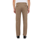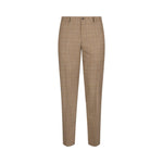 Pantaloni in misto lana stretch. Motivo Principe di Galles. Piega stirata. Tasche sui fianchi. Tasche a filetto sul retro. Chiusura con bottone e zip coperta.
