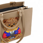 Tote bag in ecopelle martellata con Iconico orsetto Marvin e logo stampato. Manici in ecopelle con dettagli metallici logati e doppia tracolla. Tasca centrale in ecopelle con zip e fodera interna in cotone con tasca.