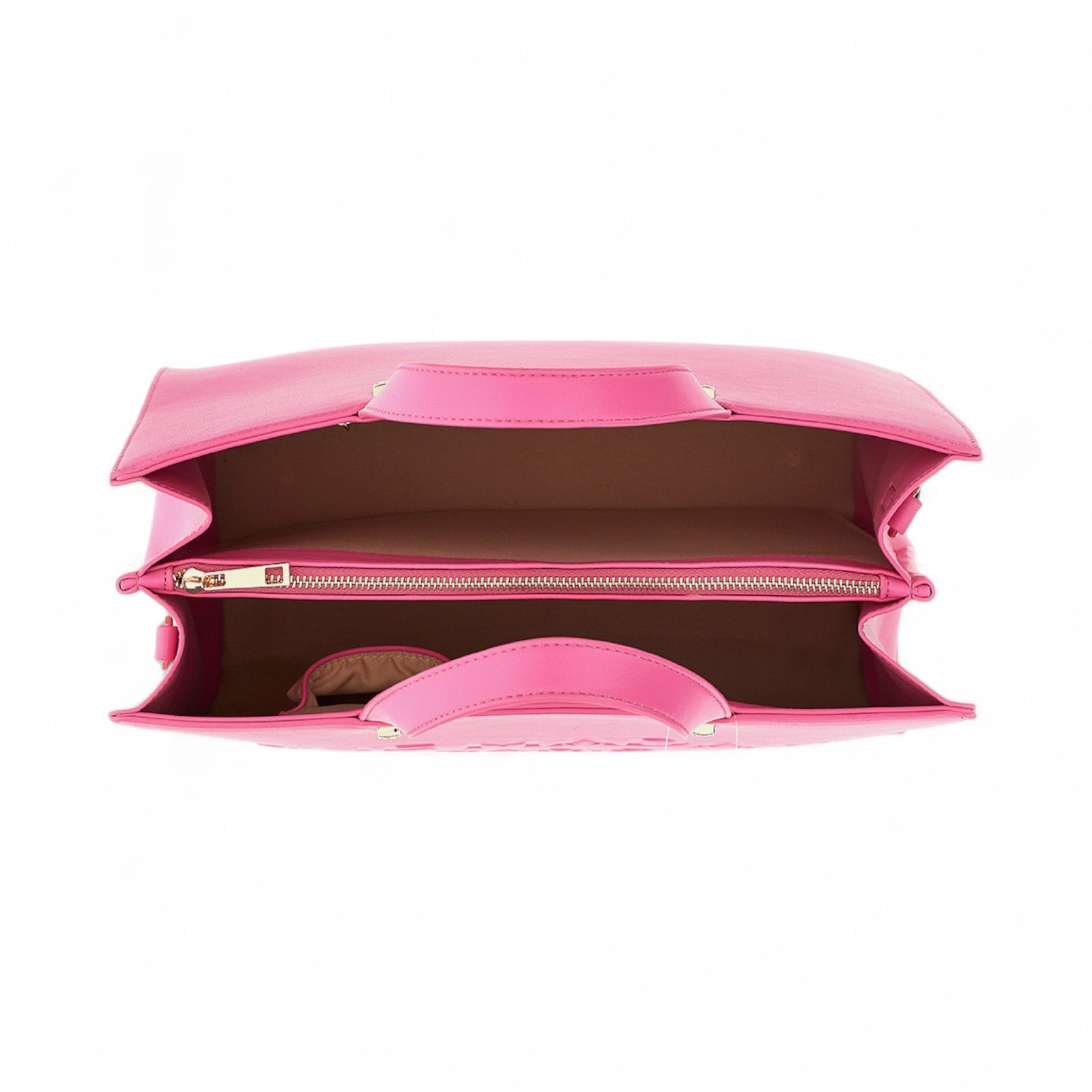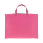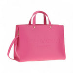 Tote bag in ecopelle vegan con logo goffrato tono su tono e borchie metalliche serigrafate. Tracolla removibile e fodera interna in cotone con tasca.