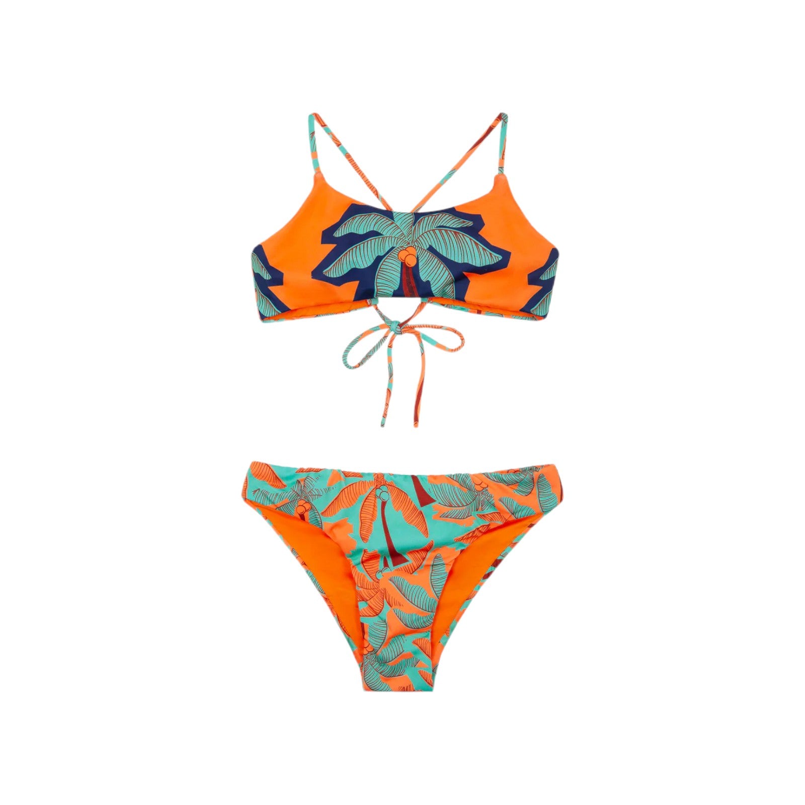 Bikini top e slip fisso in tessuto lycra fantasia.